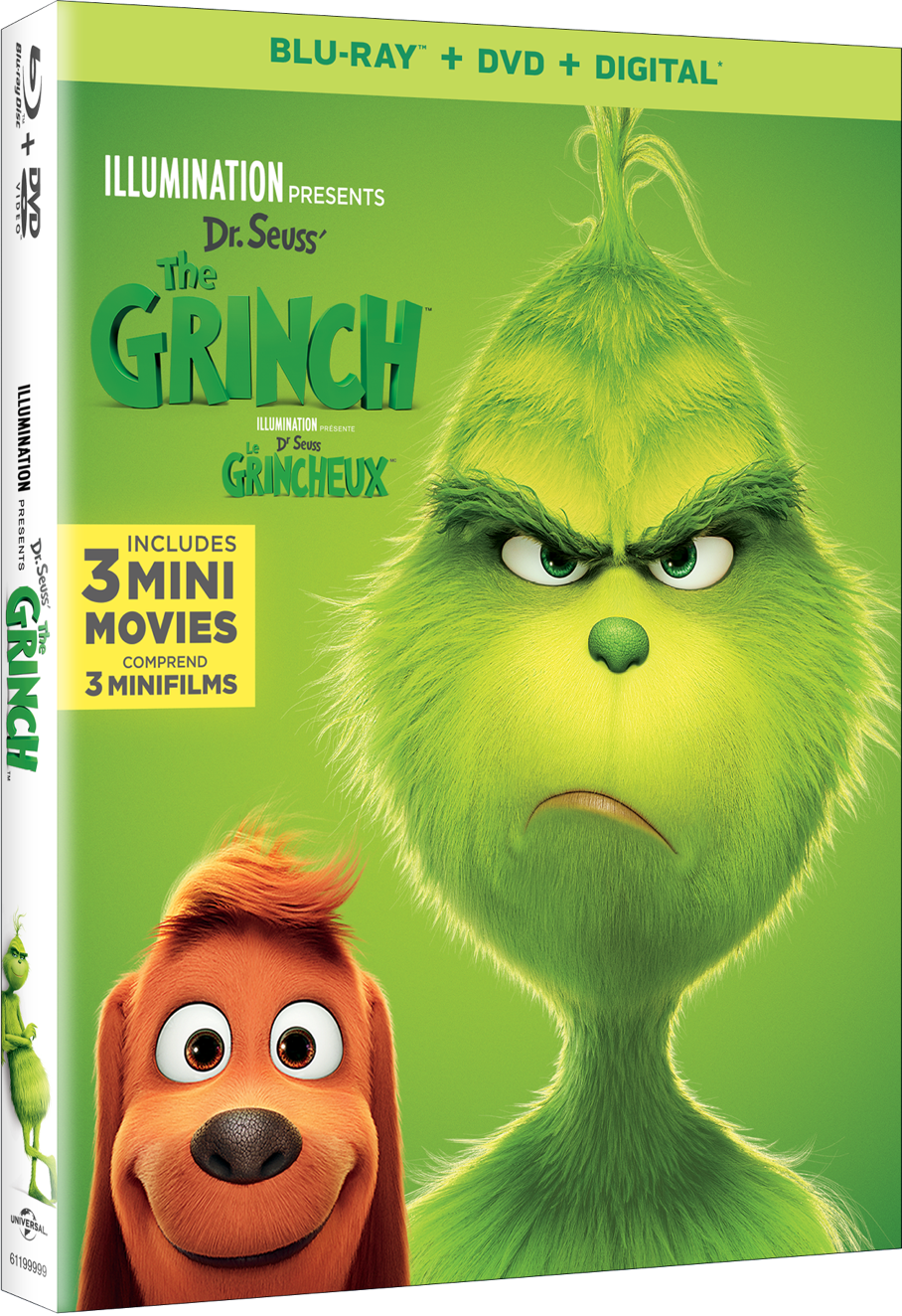 Universal City, California, January 3, 2019 – Families everywhere can ring in the New Year with Dr. Seuss’ The Grinch on Digital and via the digital movie app MOVIES ANYWHERE on January 22, 2019, and on 4K Ultra HD, 3D Blu-ray™, Blu-ray™, DVD and On Demand on February 5, 2019. From Illumination and Universal Pictures Home Entertainment, the film based on Dr. Seuss’ beloved tale about a cynical grouch who goes on a mission to steal Christmas from others only to feel his own heart grow three sizes larger through unexpected friendships is one “the whole family can watch and enjoy,” (Kidsday/Newsday).